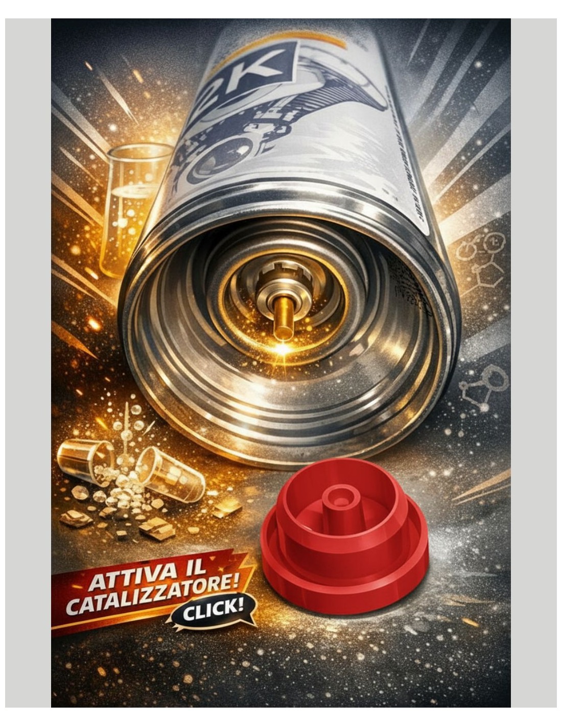 Este spray especial contiene una cápsula interna que contiene un catalizador. Este se libera presionando un botón en el fondo de la lata.