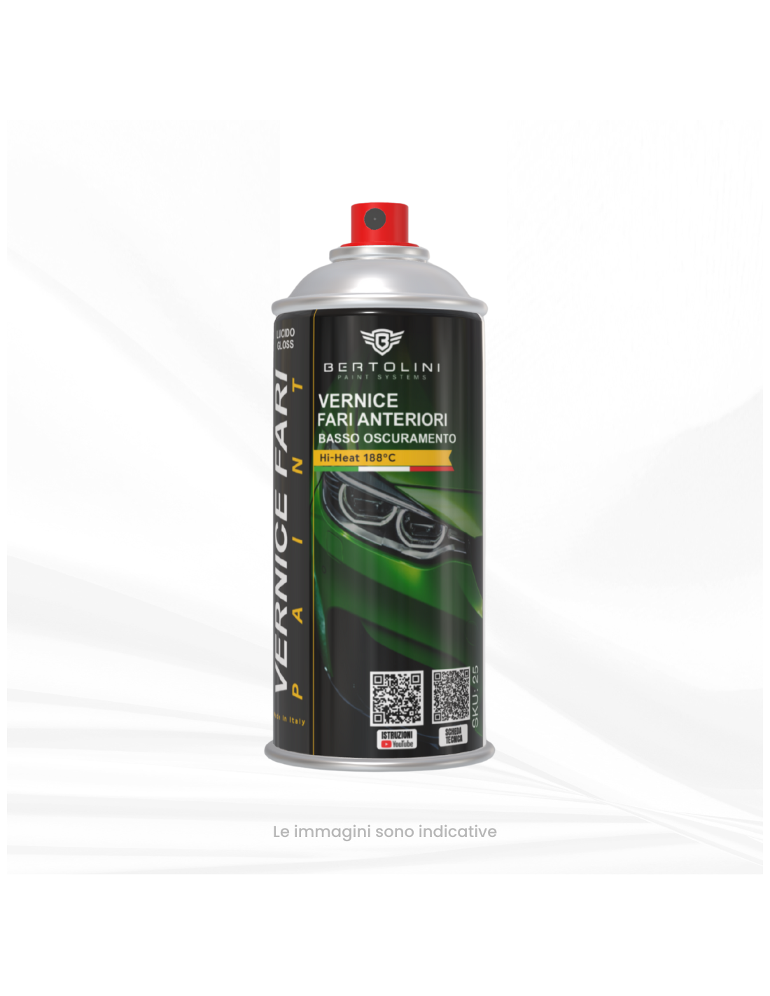 ATTENZIONE!: le plastiche dei fari non sono tutte uguali, alcune sono più deboli di altre così come le plastiche in generale sono tutte differenti tra loro, quindi suggeriamo sempre delle prove preventive per verificare la resistenza della plastica alla verniciatura. Leggere le istruzioni per ulteriori dettagli.