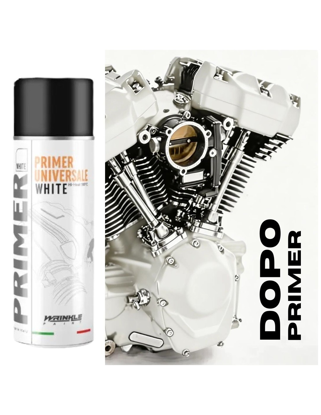 - Primer alta temperatura spray concepito per verniciare motori, pinze freno e qualsiasi pezzo di metallo ,lega o plastica.