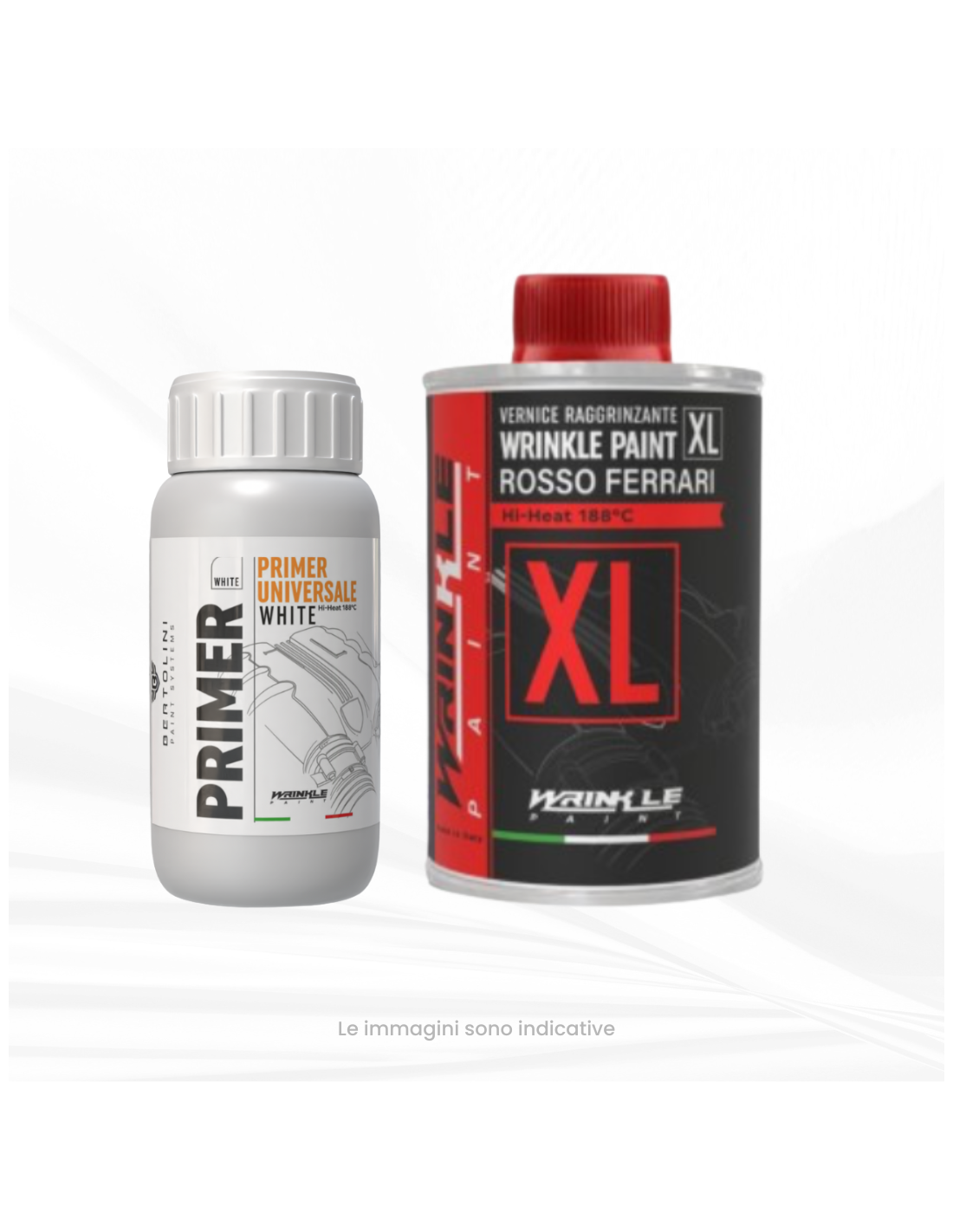 - Kit contiene 500gr di vernice raggrinzante rossa XL + 250 gr di primer bianco alta teMperatura
